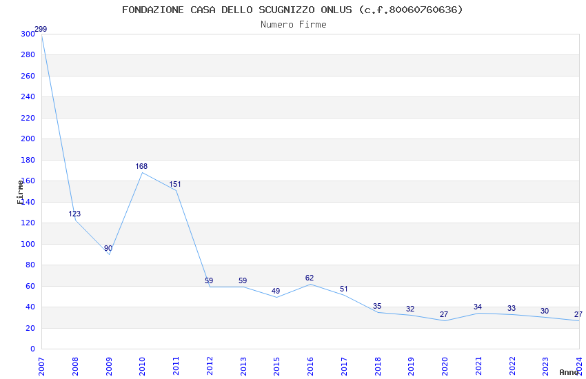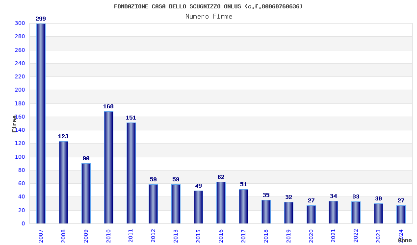 | Anno | Firme | Importi | Media | Naz. | Reg. | Prov. | Comu. |
