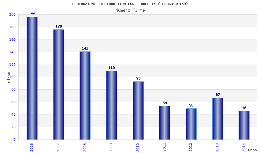 | Anno | Firme | Importi | Media | Naz. | Reg. | Prov. | Comu. |
