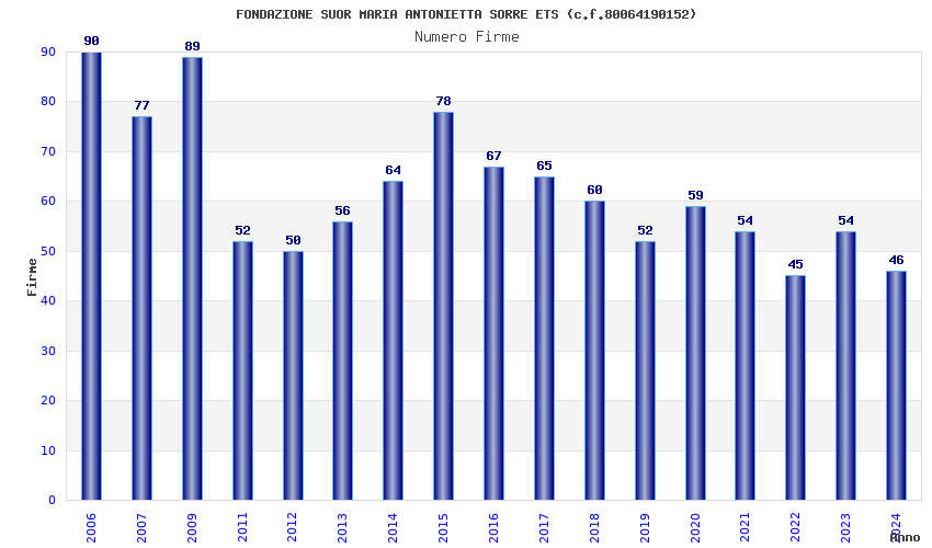 | Anno | Firme | Importi | Media | Naz. | Reg. | Prov. | Comu. |