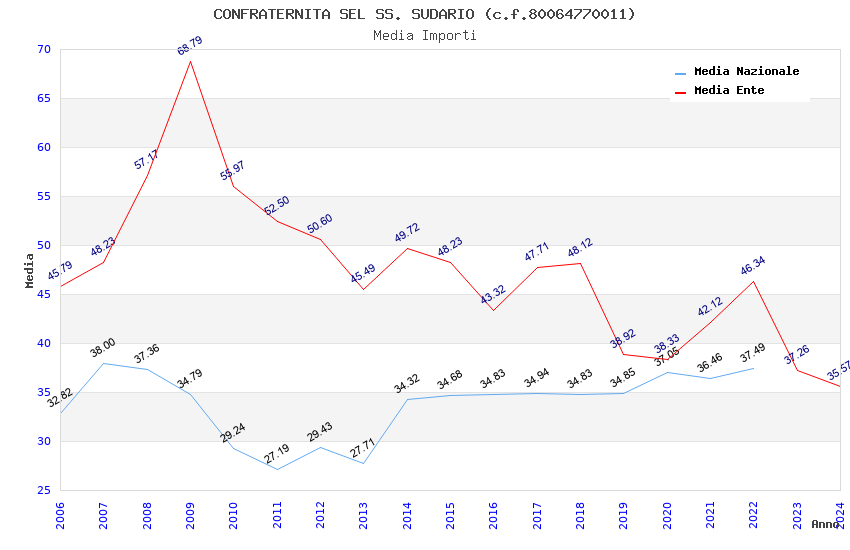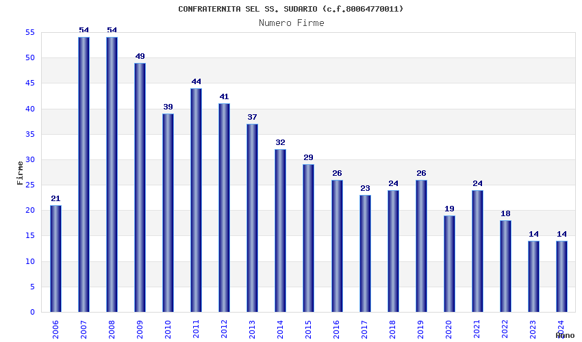 | Anno | Firme | Importi | Media | Naz. | Reg. | Prov. | Comu. |