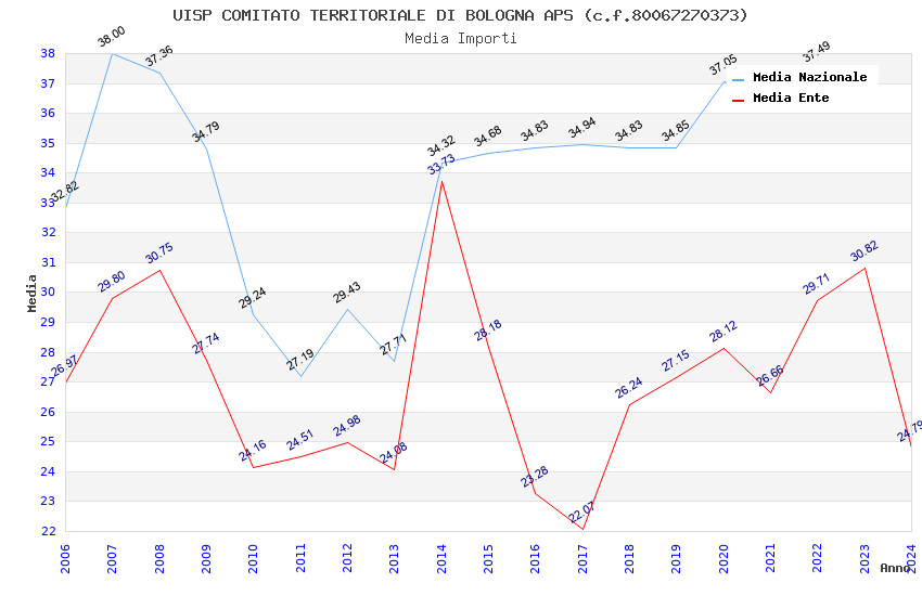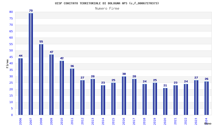 | Anno | Firme | Importi | Media | Naz. | Reg. | Prov. | Comu. |
