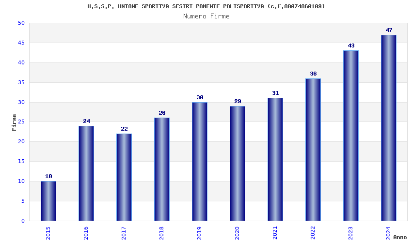 | Anno | Firme | Importi | Media | Naz. | Reg. | Prov. | Comu. |