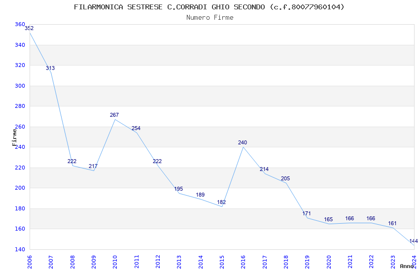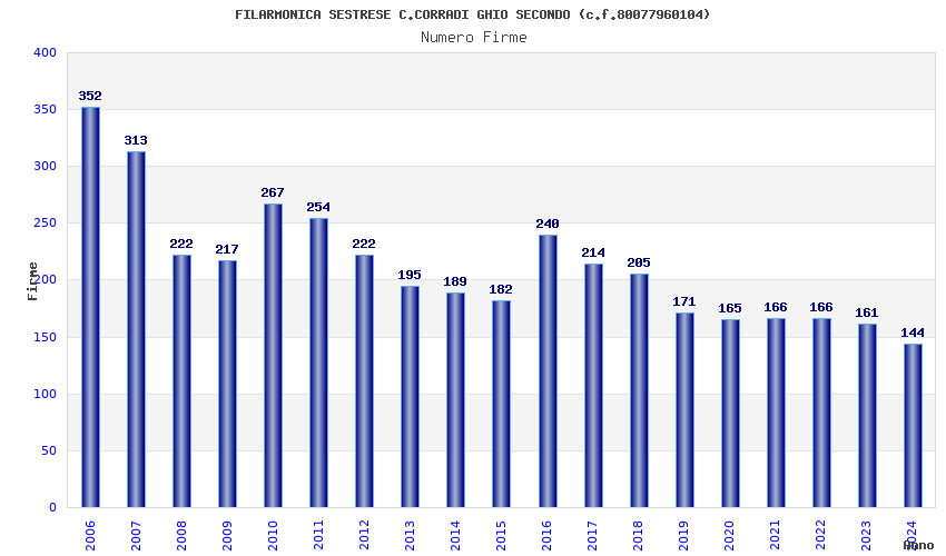 | Anno | Firme | Importi | Media | Naz. | Reg. | Prov. | Comu. |