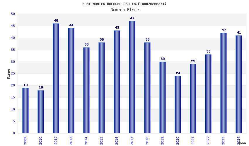 | Anno | Firme | Importi | Media | Naz. | Reg. | Prov. | Comu. |