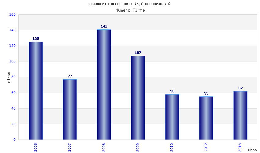 | Anno | Firme | Importi | Media | Naz. | Reg. | Prov. | Comu. |