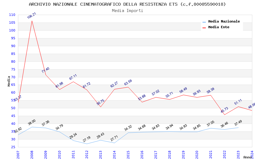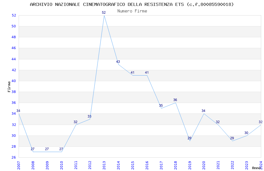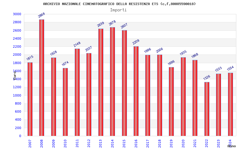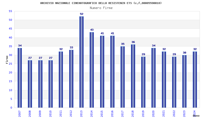 | Anno | Firme | Importi | Media | Naz. | Reg. | Prov. | Comu. |