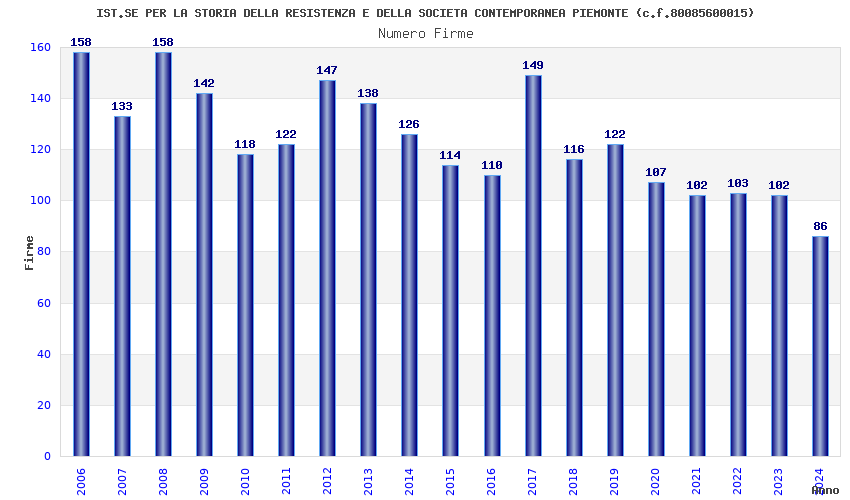 | Anno | Firme | Importi | Media | Naz. | Reg. | Prov. | Comu. |