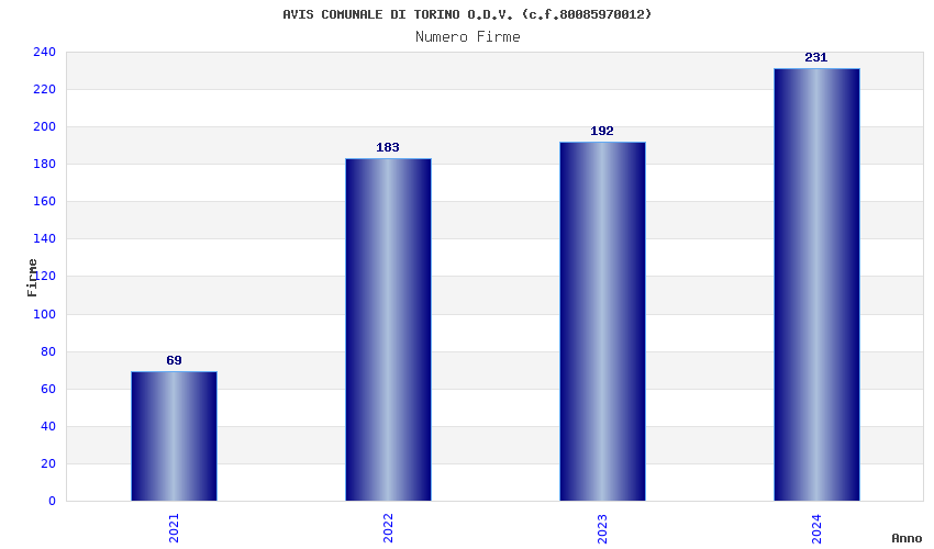 | Anno | Firme | Importi | Media | Naz. | Reg. | Prov. | Comu. |