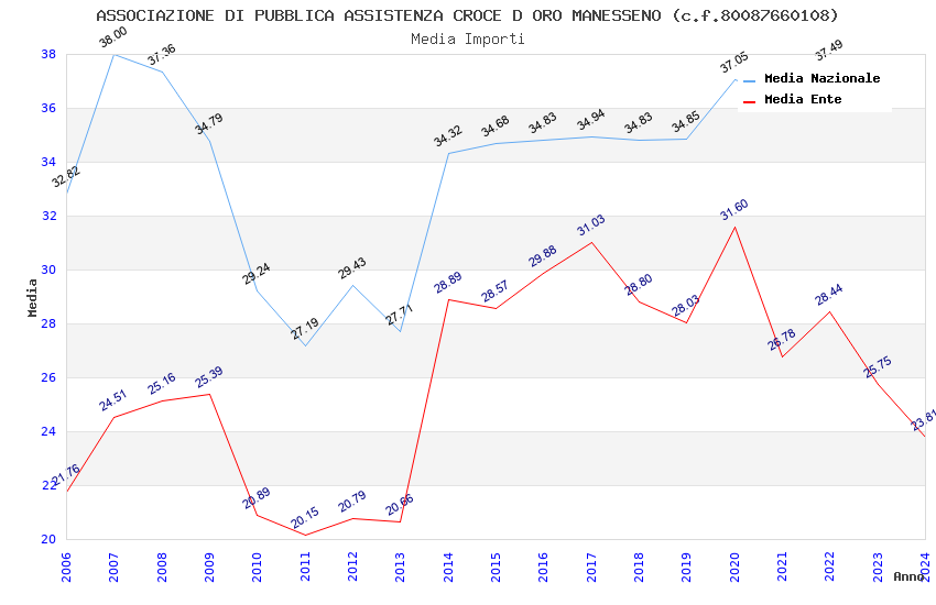 | Anno | Firme | Importi | Media | Naz. | Reg. | Prov. | Comu. |
