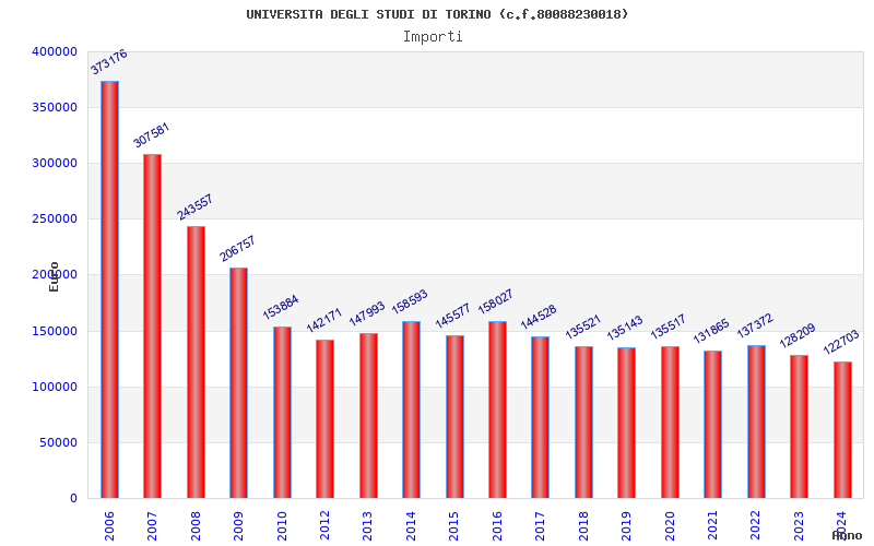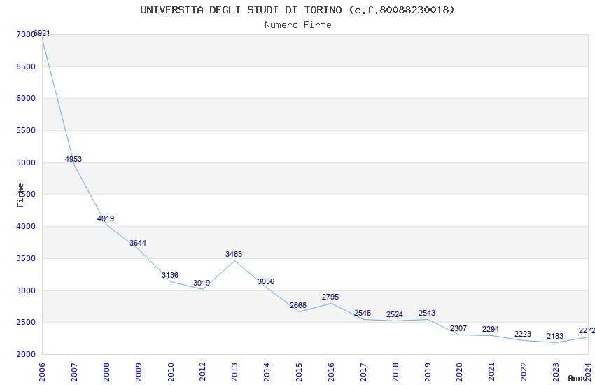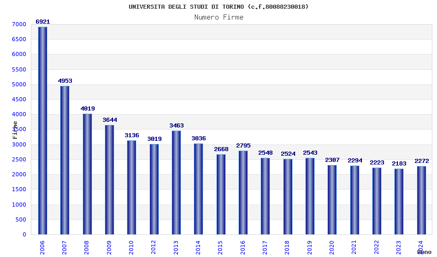 | Anno | Firme | Importi | Media | Naz. | Reg. | Prov. | Comu. |