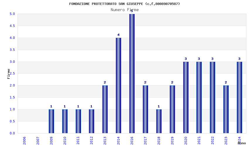 | Anno | Firme | Importi | Media | Naz. | Reg. | Prov. | Comu. |