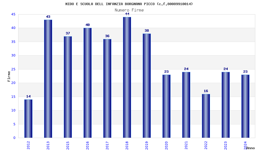 | Anno | Firme | Importi | Media | Naz. | Reg. | Prov. | Comu. |