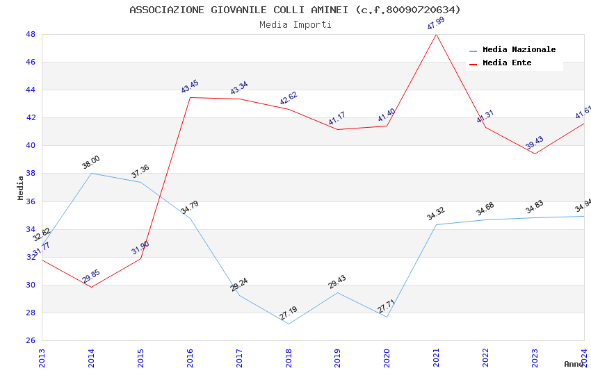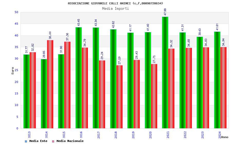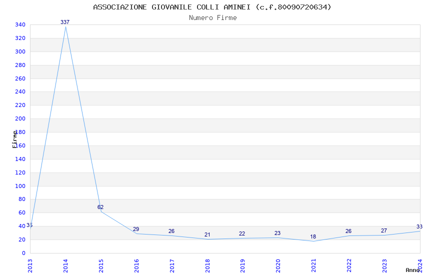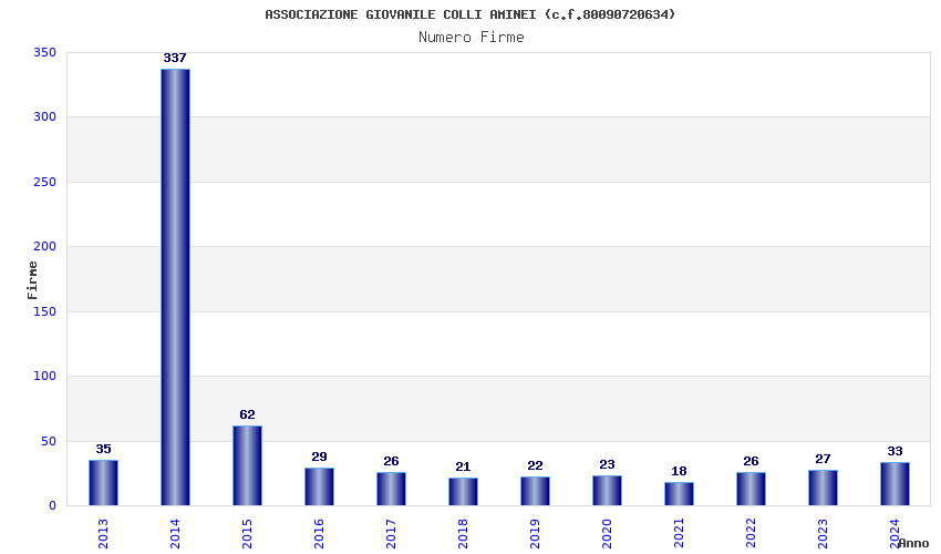 | Anno | Firme | Importi | Media | Naz. | Reg. | Prov. | Comu. |