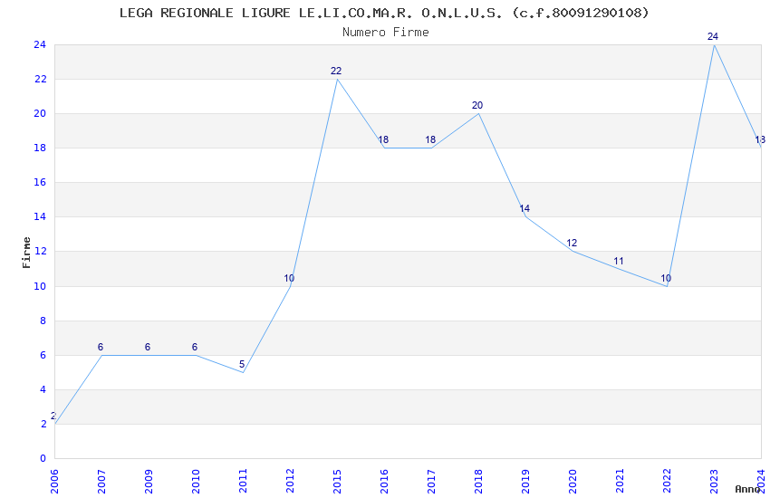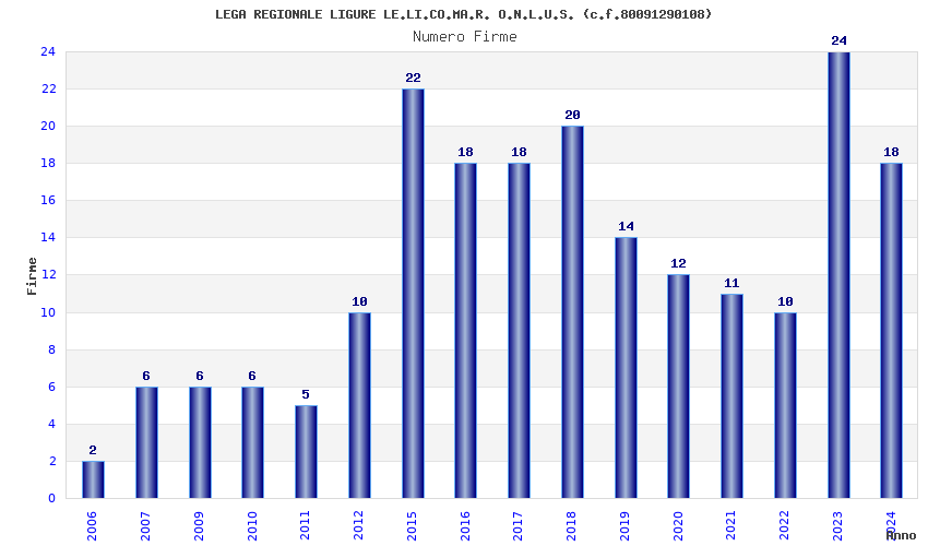 | Anno | Firme | Importi | Media | Naz. | Reg. | Prov. | Comu. |