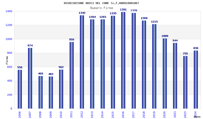 | Anno | Firme | Importi | Media | Naz. | Reg. | Prov. | Comu. |