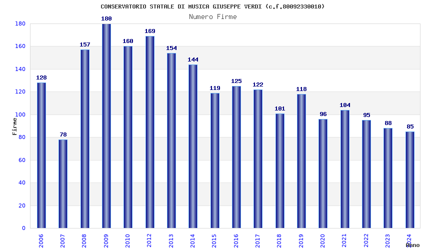 | Anno | Firme | Importi | Media | Naz. | Reg. | Prov. | Comu. |