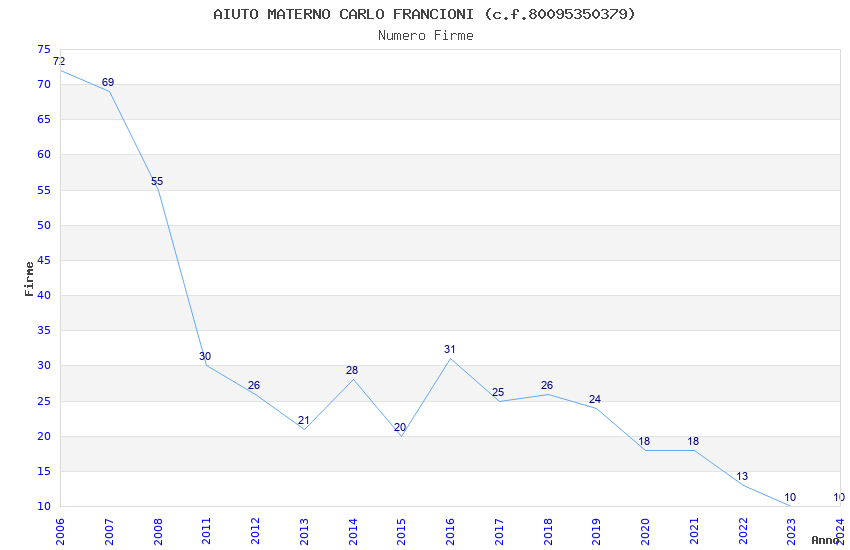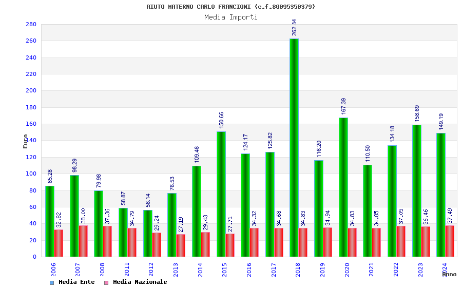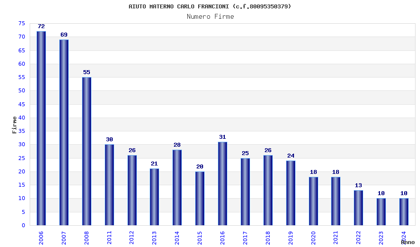 | Anno | Firme | Importi | Media | Naz. | Reg. | Prov. | Comu. |