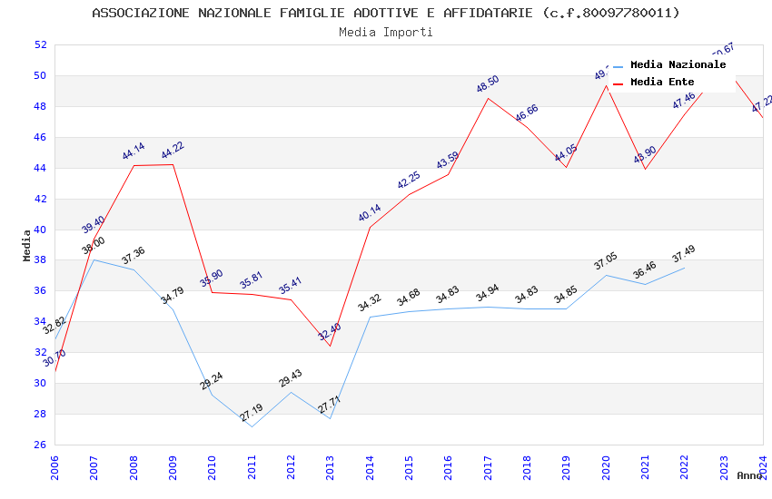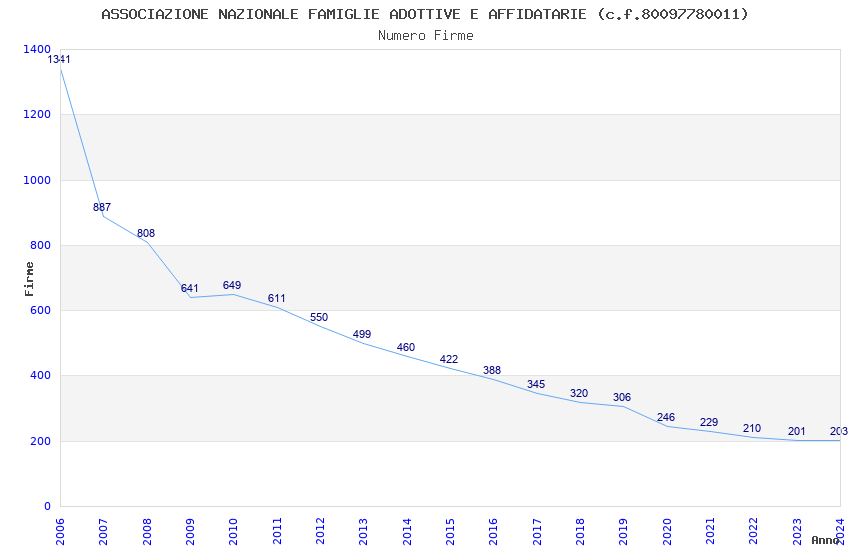 | Anno | Firme | Importi | Media | Naz. | Reg. | Prov. | Comu. |
