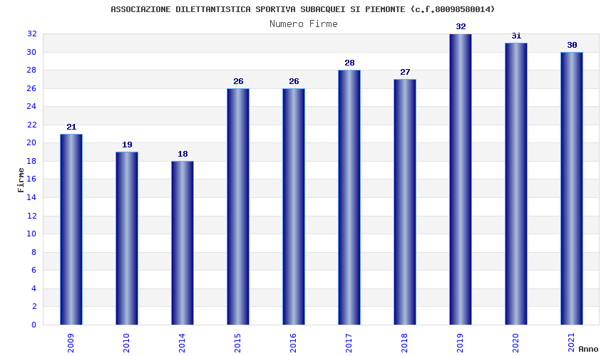 | Anno | Firme | Importi | Media | Naz. | Reg. | Prov. | Comu. |