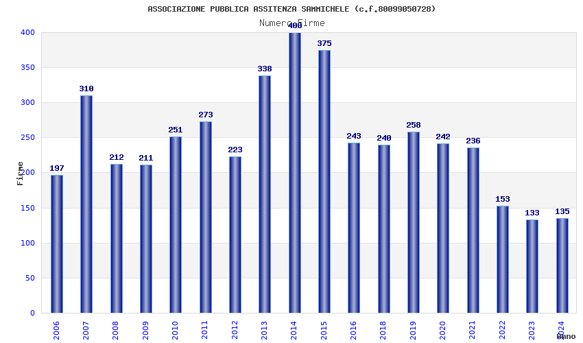 Anno Firme Importi Media Naz. Reg. Prov. Comu.