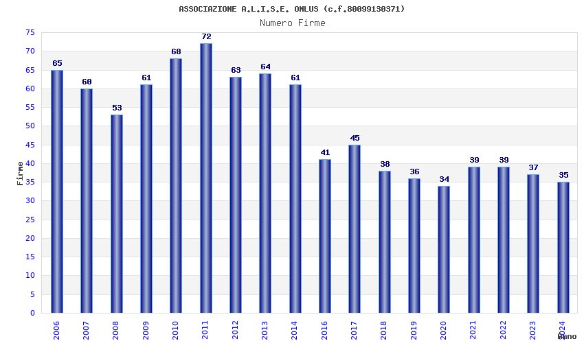 | Anno | Firme | Importi | Media | Naz. | Reg. | Prov. | Comu. |