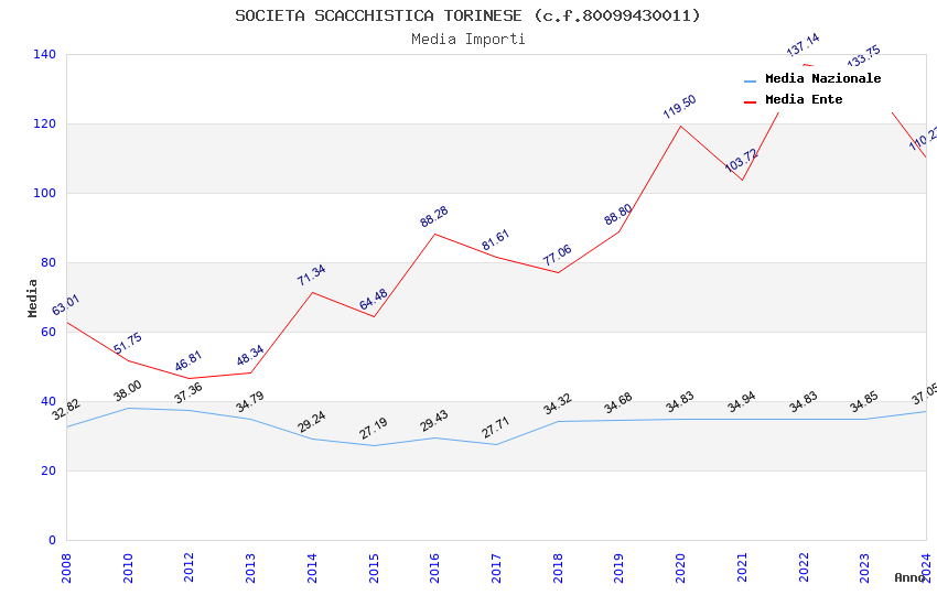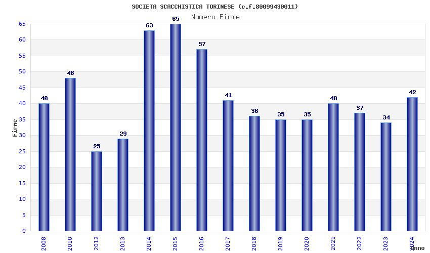 | Anno | Firme | Importi | Media | Naz. | Reg. | Prov. | Comu. |