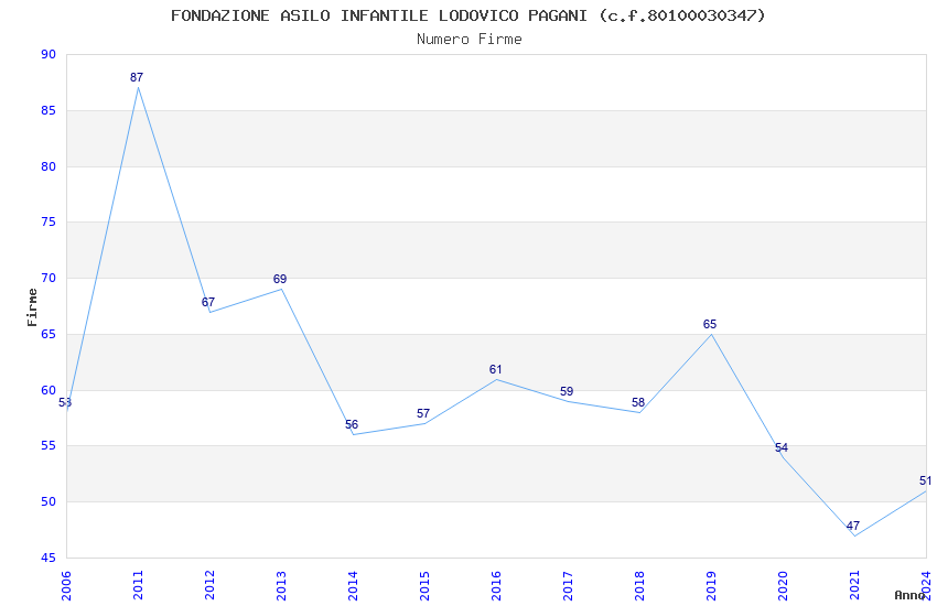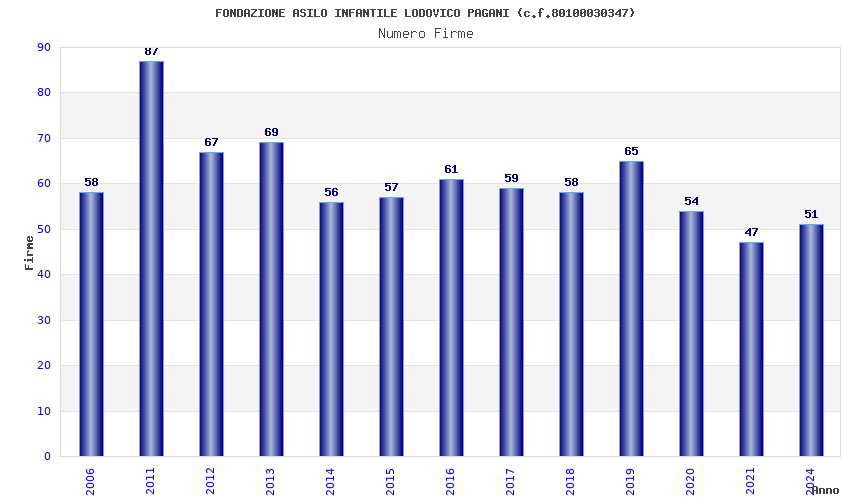 | Anno | Firme | Importi | Media | Naz. | Reg. | Prov. | Comu. |