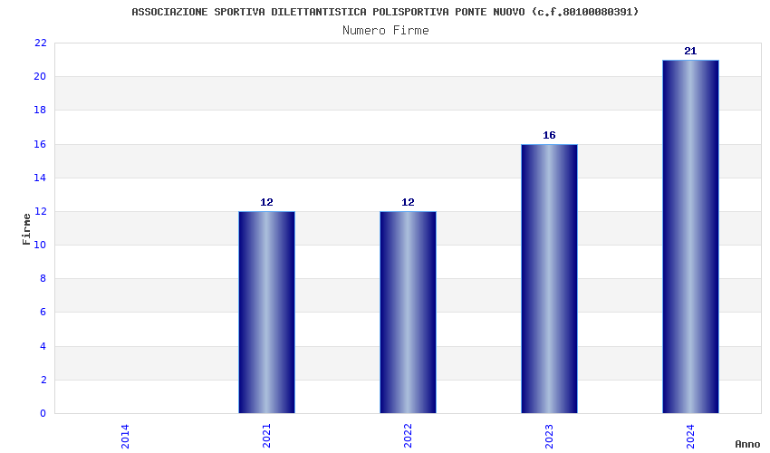 | Anno | Firme | Importi | Media | Naz. | Reg. | Prov. | Comu. |
