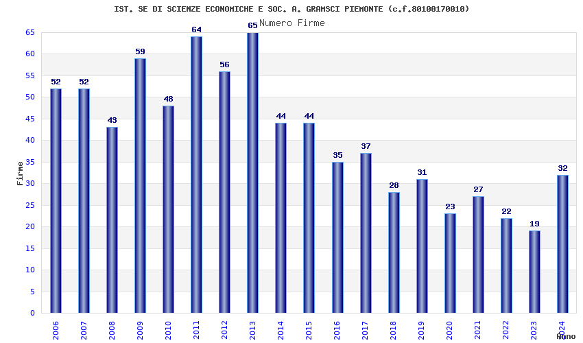 | Anno | Firme | Importi | Media | Naz. | Reg. | Prov. | Comu. |