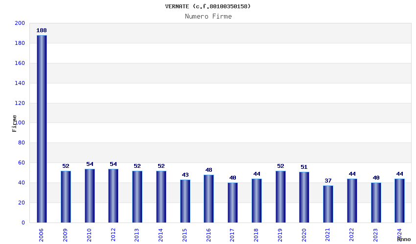 Anno Firme Importi Media Naz. Reg. Prov. Comu.