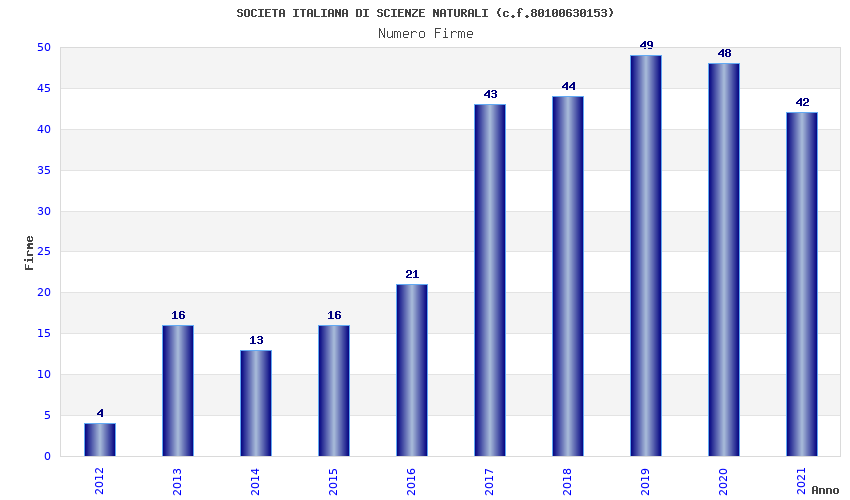 | Anno | Firme | Importi | Media | Naz. | Reg. | Prov. | Comu. |