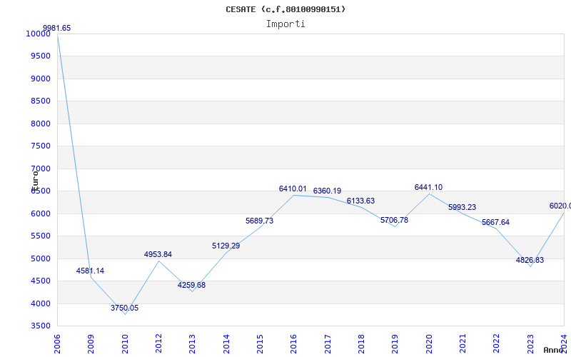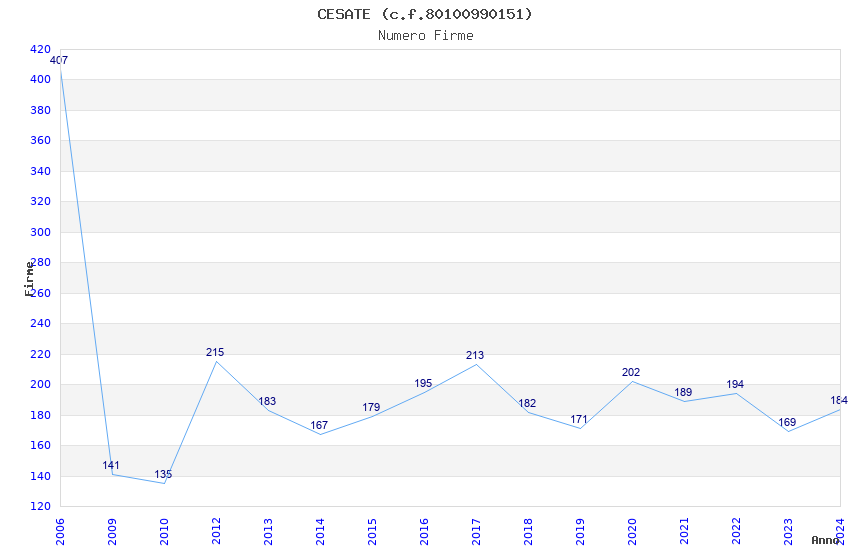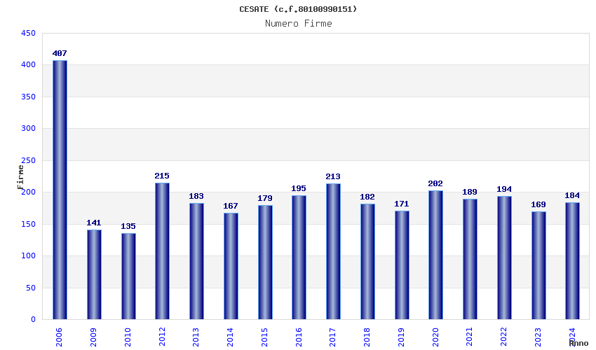 | Anno | Firme | Importi | Media | Naz. | Reg. | Prov. | Comu. |