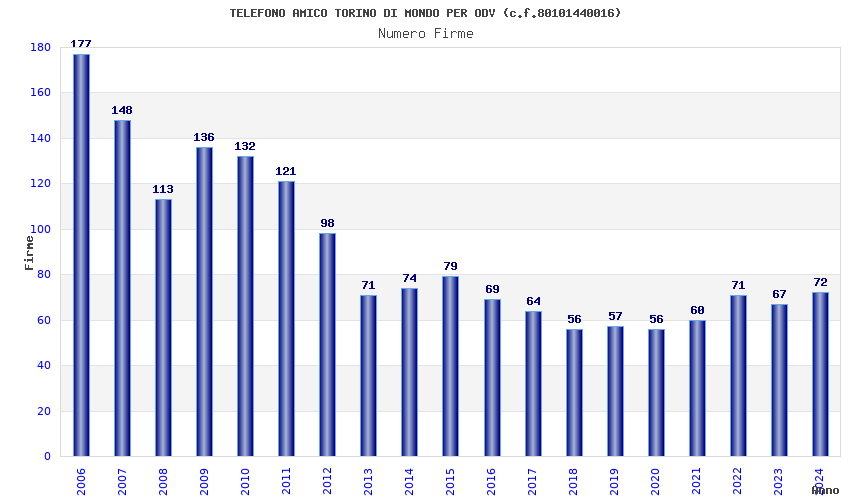 | Anno | Firme | Importi | Media | Naz. | Reg. | Prov. | Comu. |