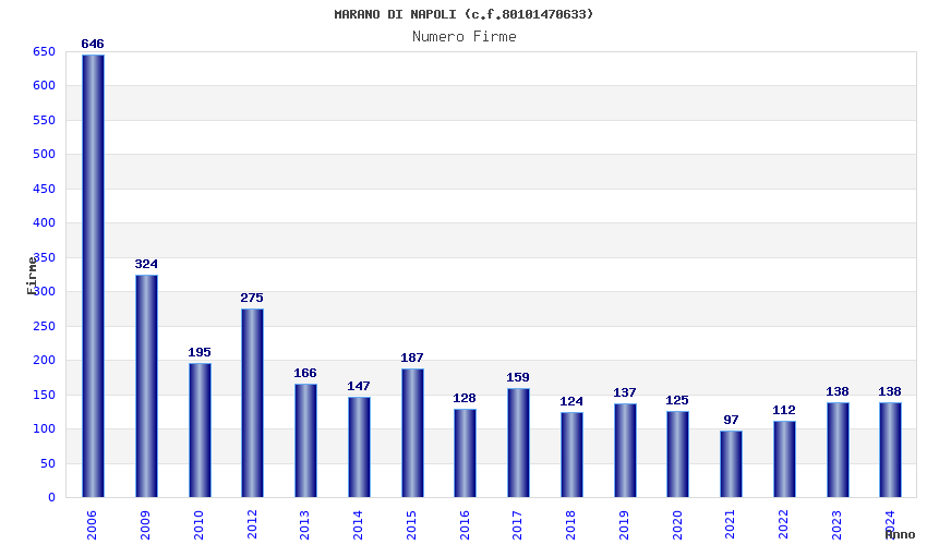 | Anno | Firme | Importi | Media | Naz. | Reg. | Prov. | Comu. |