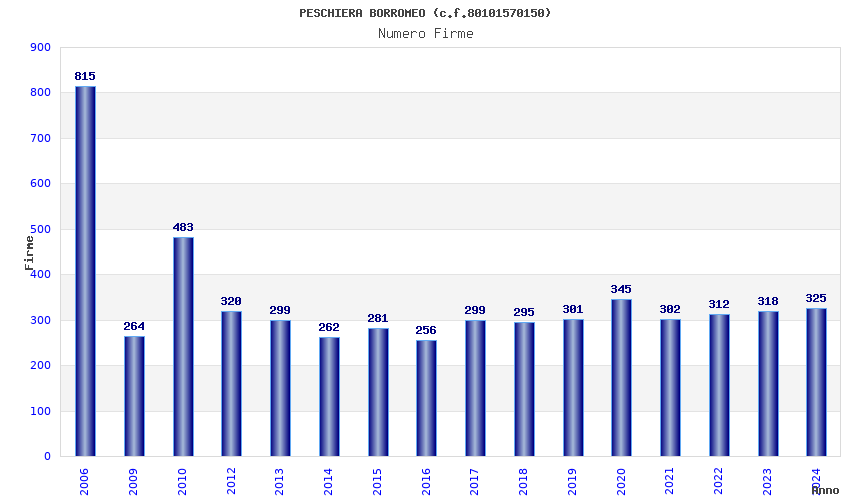| Anno | Firme | Importi | Media | Naz. | Reg. | Prov. | Comu. |