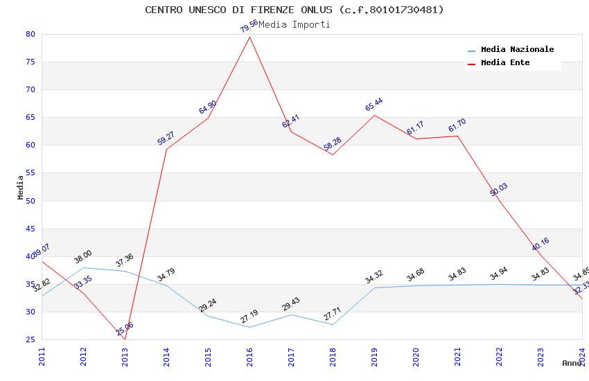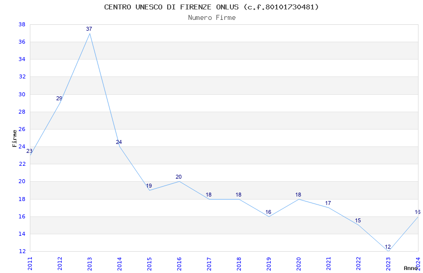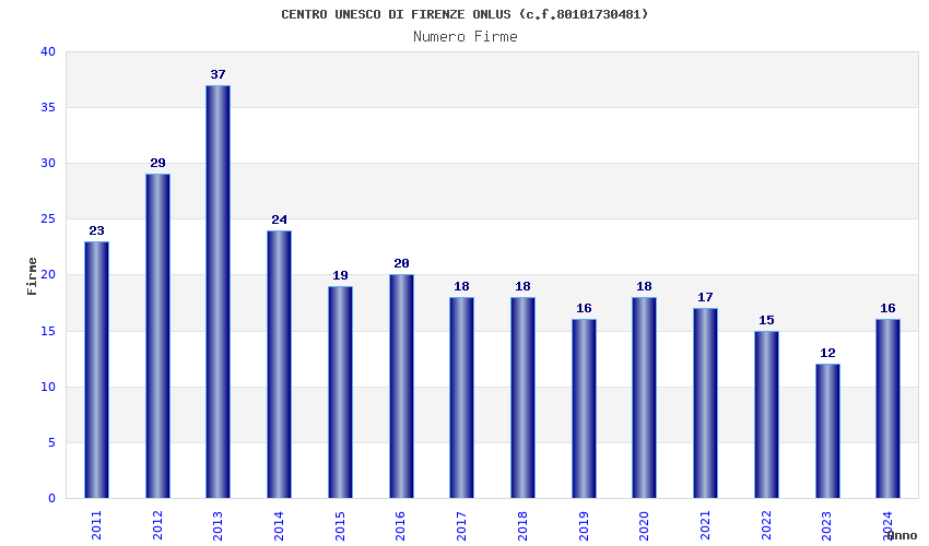 | Anno | Firme | Importi | Media | Naz. | Reg. | Prov. | Comu. |