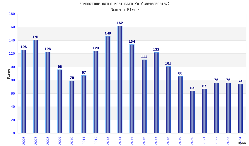 | Anno | Firme | Importi | Media | Naz. | Reg. | Prov. | Comu. |