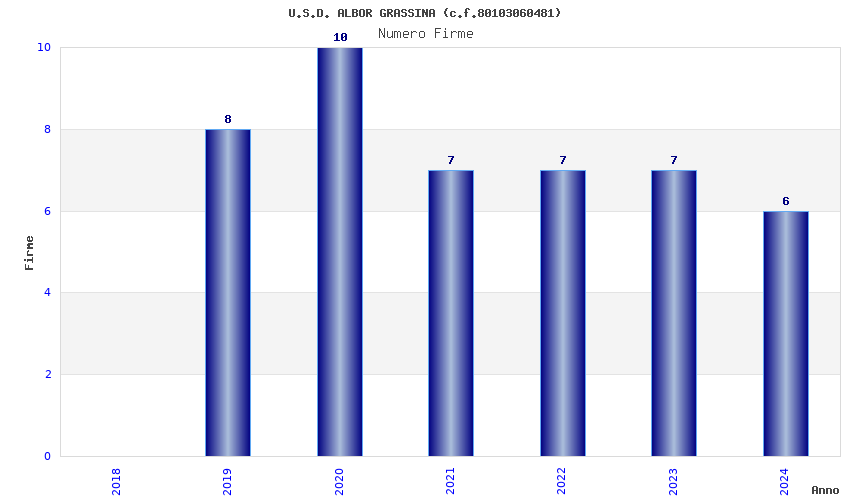 | Anno | Firme | Importi | Media | Naz. | Reg. | Prov. | Comu. |