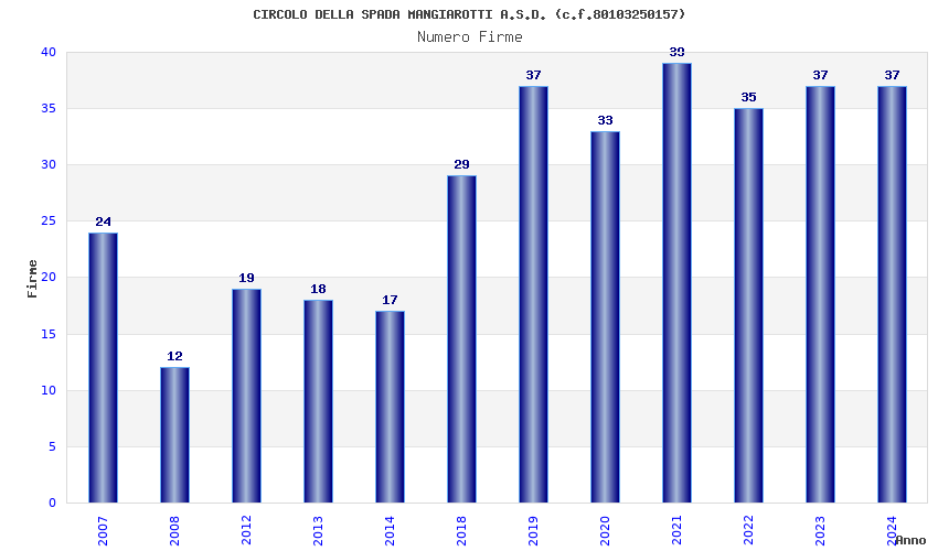 | 2019 | 37 | 9.663,13 | 261,17 | 5.368 | 1.330 | 637 | 469 |