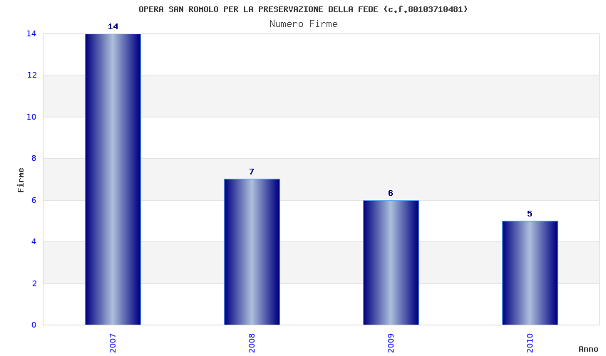 | Anno | Firme | Importi | Media | Naz. | Reg. | Prov. | Comu. |