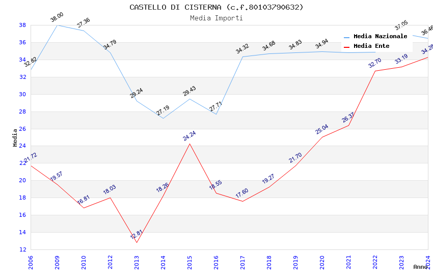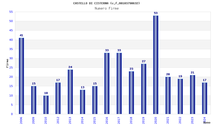 | Anno | Firme | Importi | Media | Naz. | Reg. | Prov. | Comu. |