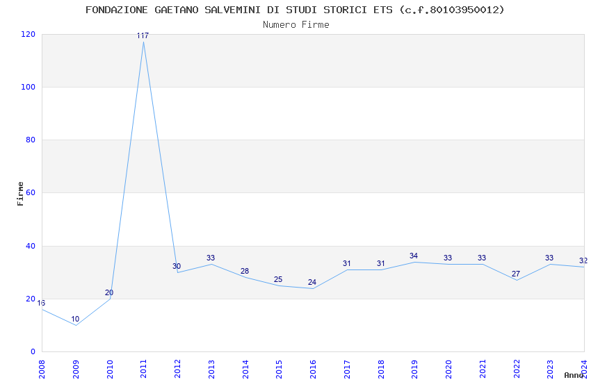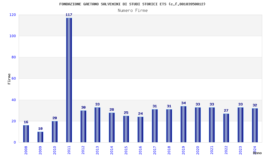 | Anno | Firme | Importi | Media | Naz. | Reg. | Prov. | Comu. |