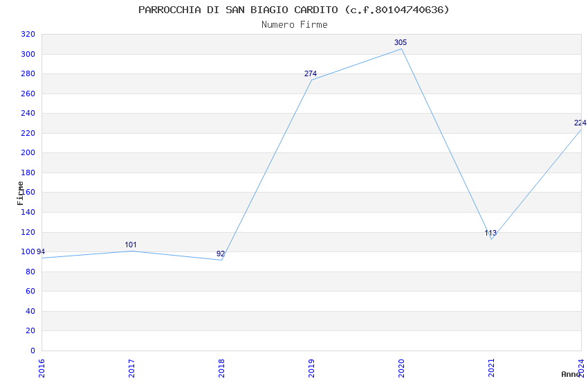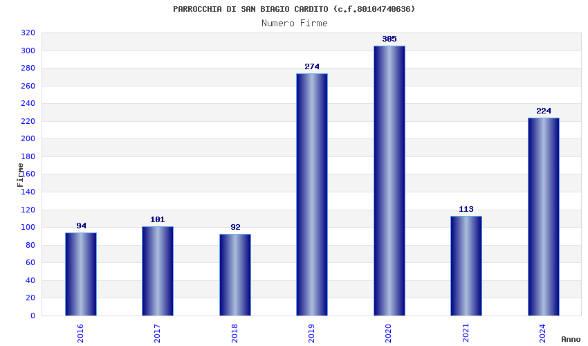 | Anno | Firme | Importi | Media | Naz. | Reg. | Prov. | Comu. |