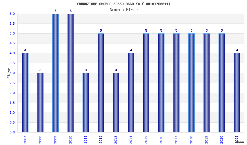 | Anno | Firme | Importi | Media | Naz. | Reg. | Prov. | Comu. |