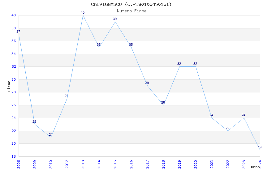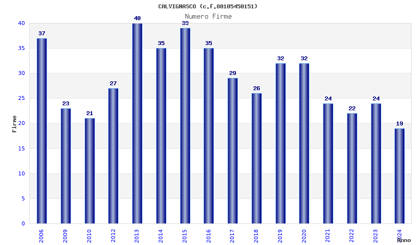 | Anno | Firme | Importi | Media | Naz. | Reg. | Prov. | Comu. |