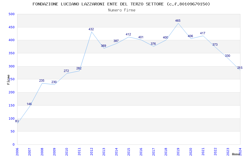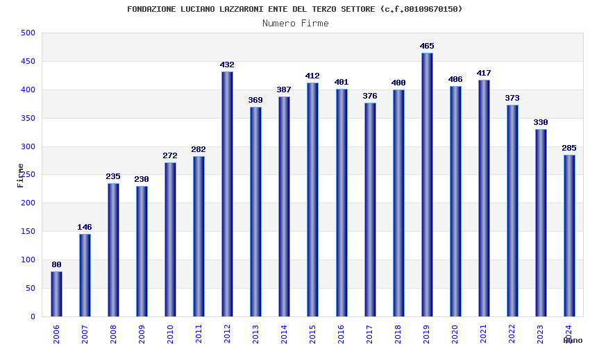 | Anno | Firme | Importi | Media | Naz. | Reg. | Prov. | Comu. |