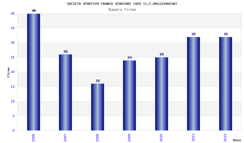 | Anno | Firme | Importi | Media | Naz. | Reg. | Prov. | Comu. |