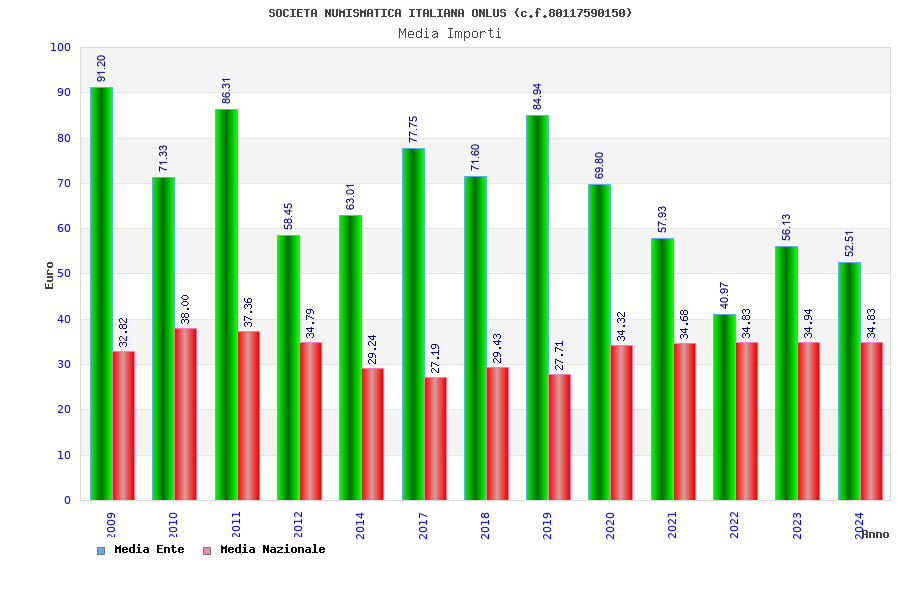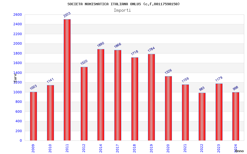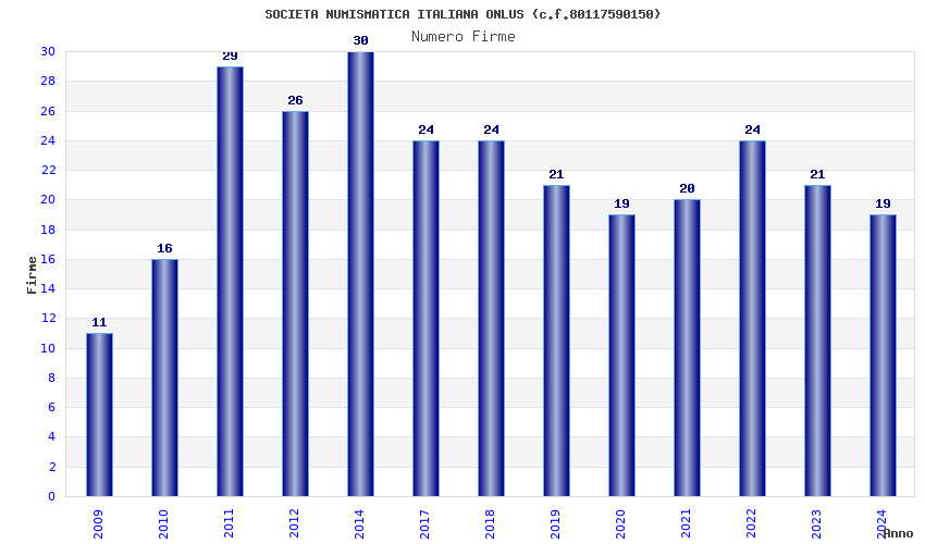 | Anno | Firme | Importi | Media | Naz. | Reg. | Prov. | Comu. |