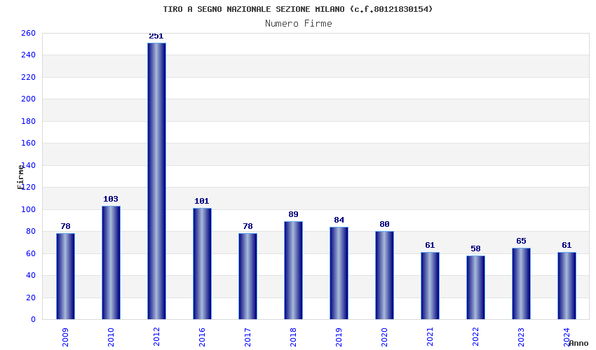 | Anno | Firme | Importi | Media | Naz. | Reg. | Prov. | Comu. |