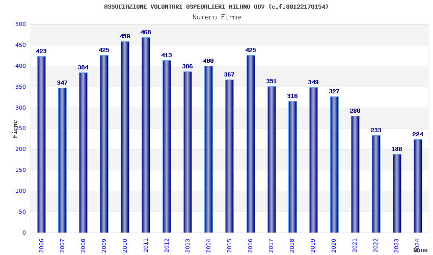| Anno | Firme | Importi | Media | Naz. | Reg. | Prov. | Comu. |